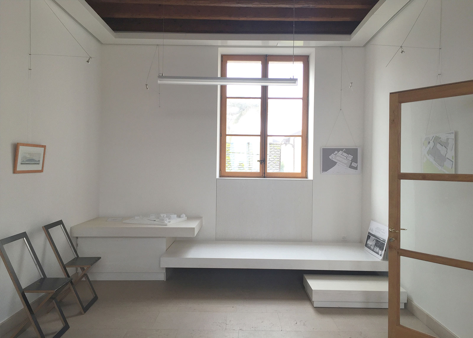 Le projet de rénovation de la salle de mariage de la commune de Russin dans le bâtiment de la mairie, fait partie des étroites collaboration de d2 Architectes et Associés SA avec les autorités locales et souligne ses compétences pour le renouvellement de l’espace existant. Les enjeux principaux sont l’adaptation et la modification des proportions de l’espace. Initialement étroit et haut de plafond, les travaux entrepris ont permis d’améliorer la viabilité de la salle de mariage. Un podium est mis en place pour faciliter et renforcer la connexion visuelle avec le jardin et permet également de ranger les chaises dans un meuble intégré dans le piedestal. Pour adapter les proportions de l’espace, une installation périphérique permet d’exposer des oeuvres d’art et d’intégrer des luminaires suspendus.
