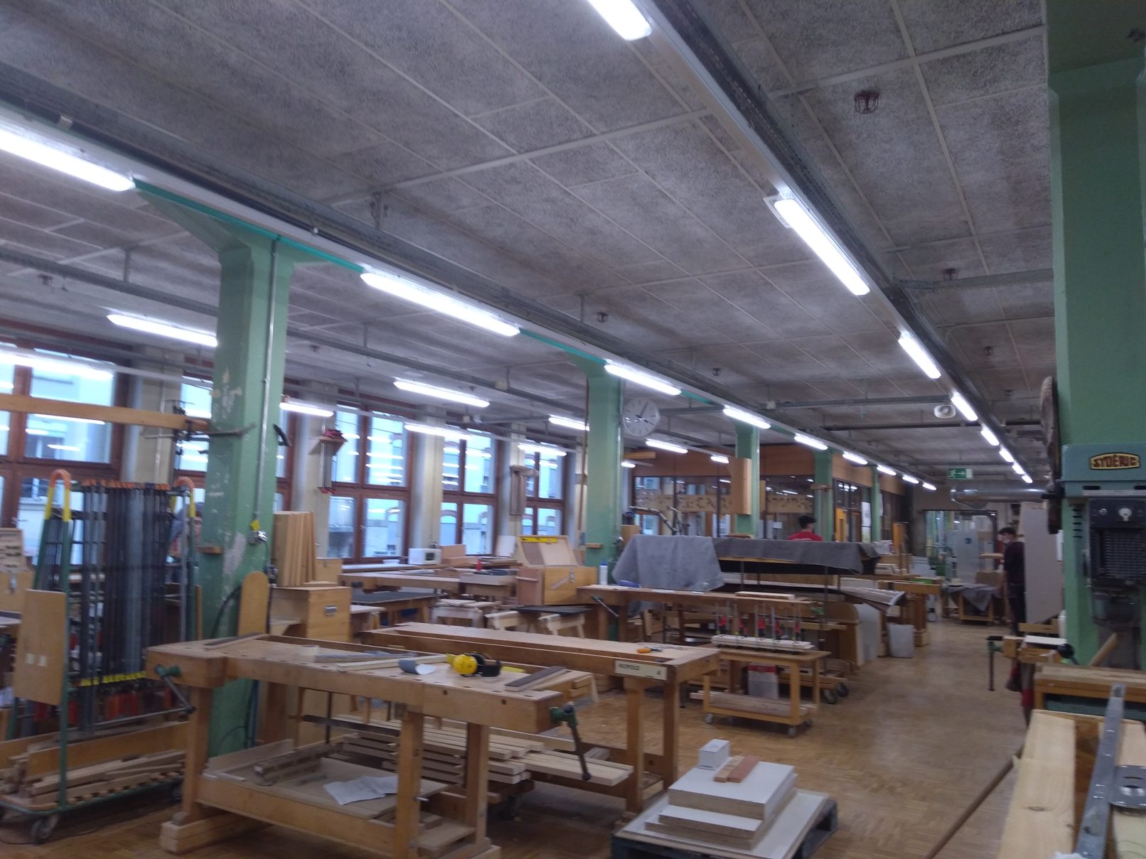 Toutefois, le bureau d2A a effectué l’exécution de divers travaux tel que la création d’une cabine peinture, le remplacement d’une installation d’aspiration pour l’atelier débitage, l’assainissement des conduits au sous-sol et d’un groupe sanitaire, la remise aux normes AEAI (remplacement de portes et mise à jour des voies de fuite), la rénovation d’installations électriques (remplacement de tous les luminaires, remise aux normes de la cabine TGBT, et des tableaux électrique qui sont en cours) mais aussi l’amélioration du confort thermique de certains ateliers qui souffraient d’un manque d’isolation (remplacement de fenêtres et de portes, réfection d’une partie de la façade aujourd’hui isolée ainsi que l’isolation intérieur d’un atelier).